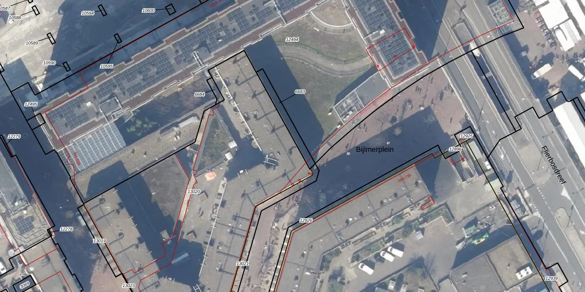 Het perceel waarop Bijlmerplein 520 staat heeft een oppervlakte van 3429 m². Dit is een zeer groot perceel. De perceeloppervlakte wordt geregistreerd door het Kadaster. Gedetailleerde informatie over de maten van dit perceel kunt u vinden in het rapport Kadastrale kaart met maatvoering van Bijlmerplein 520.