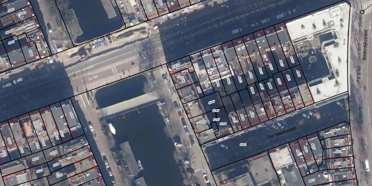 Het perceel waarop het adres ligt is ASD13-Q-5545. De afkorting 'ASD13' staat voor kadastrale gemeente Amsterdam. De gemiddelde perceelgrootte in Amsterdam is 393,94 m². Dit perceel is kleiner: de perceeloppervlakte bedraagt 107 m². Het kleinste perceel in de kadastrale gemeente is 1 m² groot. De grootste perceeloppervlakte is 6,2 ha. Op het perceel liggen in totaal 5 adressen. In de Basisregistratie Kadaster (BRK) werden de grenzen van het perceel geregistreerd op 23-11-2006.