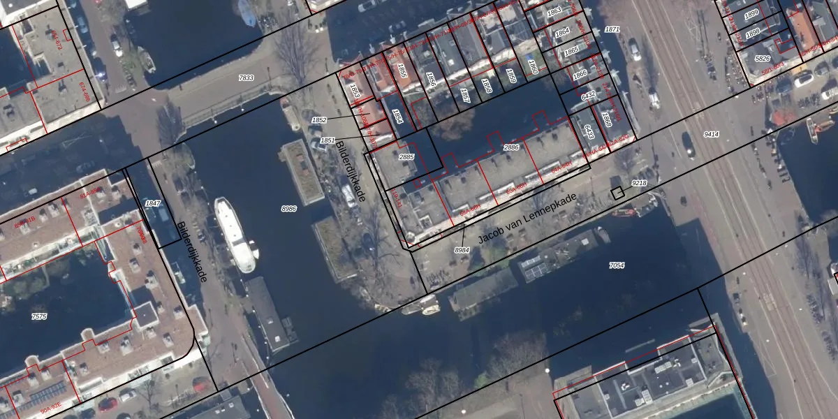 Het perceel waarop Bilderdijkkade 133 staat heeft een oppervlakte van 979 m². Dit is een groot perceel. De perceeloppervlakte wordt geregistreerd door het Kadaster. Gedetailleerde informatie over de maten van dit perceel kunt u vinden in het rapport Kadastrale kaart met maatvoering van Bilderdijkkade 133.