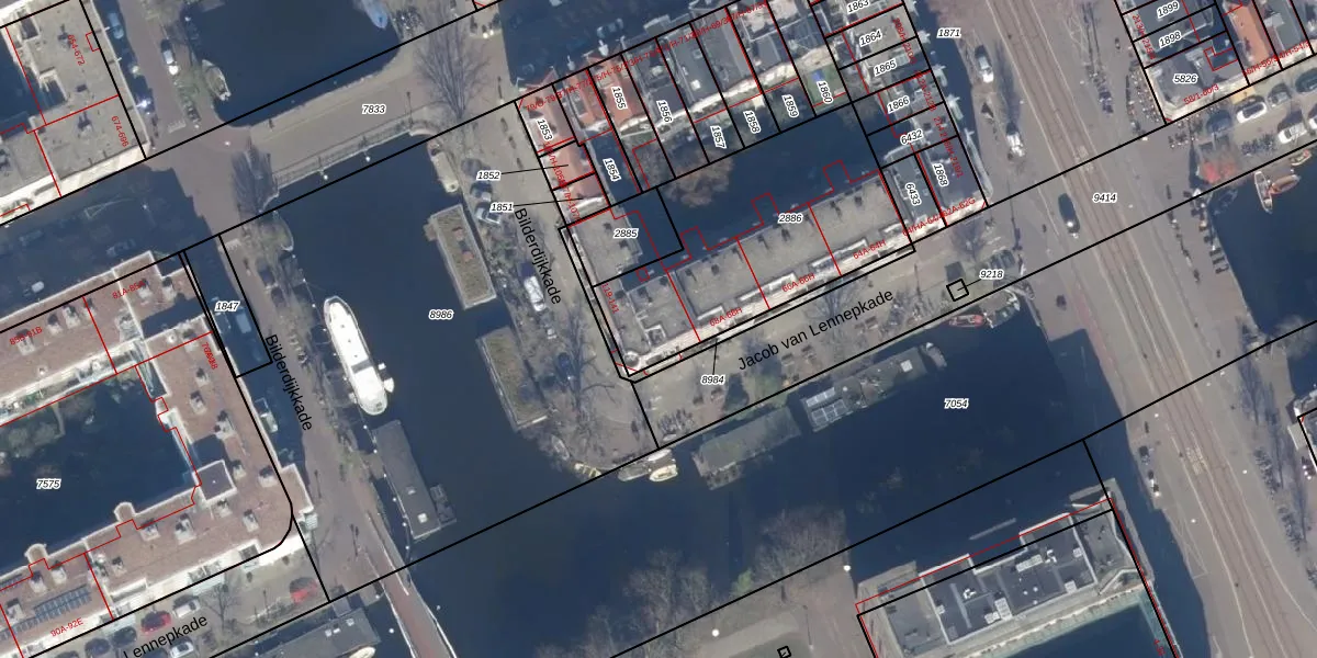 Het perceel waarop Bilderdijkkade 139 staat heeft een oppervlakte van 979 m². Dit is een groot perceel. De perceeloppervlakte wordt geregistreerd door het Kadaster. Gedetailleerde informatie over de maten van dit perceel kunt u vinden in het rapport Kadastrale kaart met maatvoering van Bilderdijkkade 139.