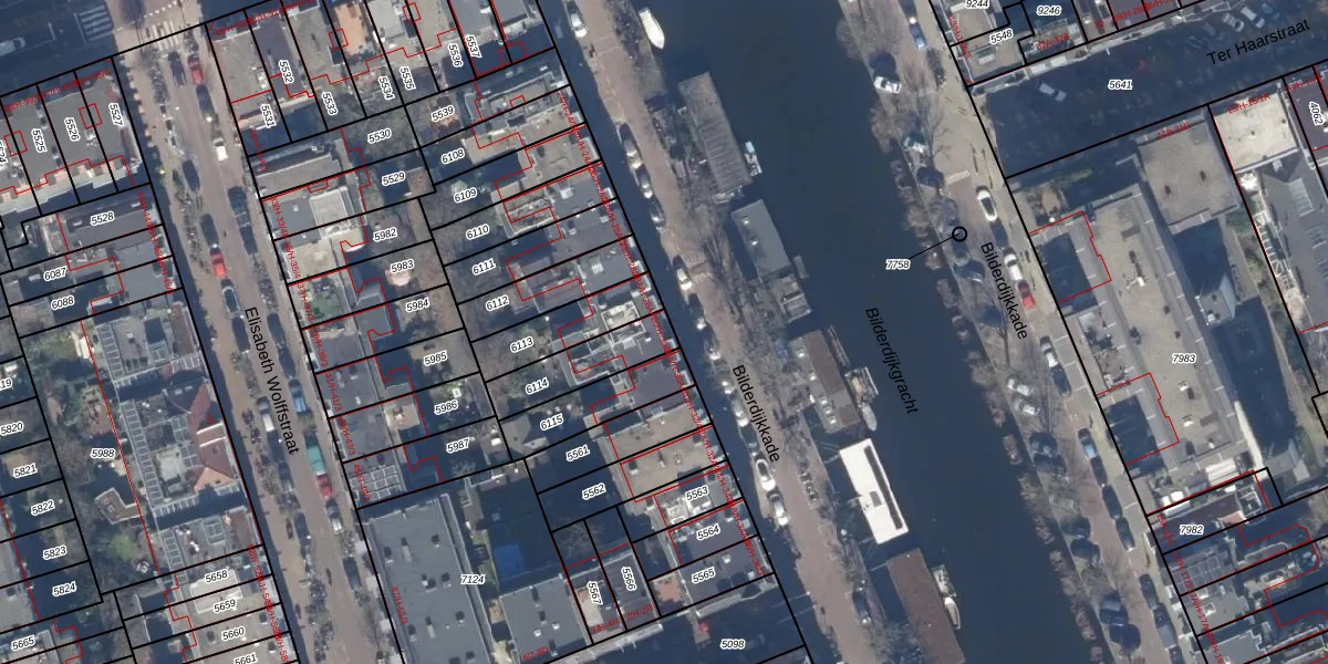 Het perceel waarop Bilderdijkkade 30-H staat heeft een oppervlakte van 181 m². Dit is een middelgroot perceel. De perceeloppervlakte wordt geregistreerd door het Kadaster. Gedetailleerde informatie over de maten van dit perceel kunt u vinden in het rapport Kadastrale kaart met maatvoering van Bilderdijkkade 30-H.