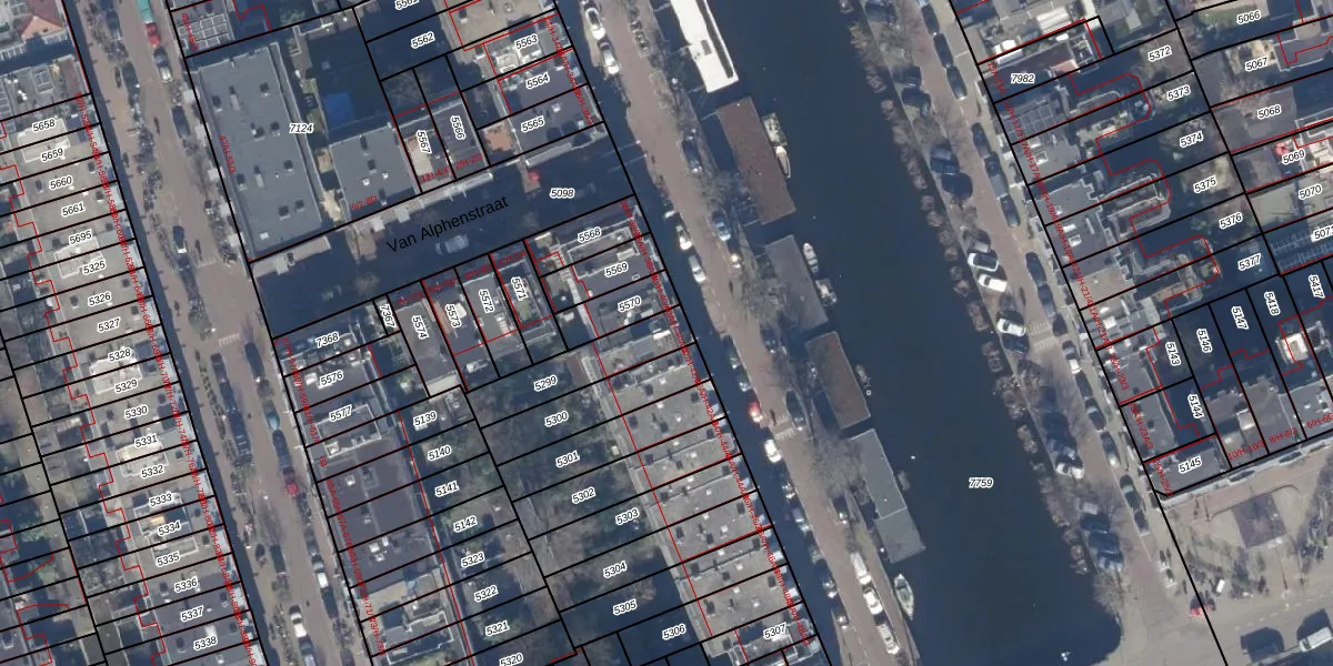 Het perceel waarop het adres ligt is ASD13-Q-5299. De afkorting 'ASD13' staat voor kadastrale gemeente Amsterdam. De gemiddelde perceelgrootte in Amsterdam is 394,07 m². Dit perceel is kleiner: de perceeloppervlakte bedraagt 214 m². Het grootste perceel in de kadastrale gemeente is 6,2 ha. Het kleinste perceel heeft een oppervlakte van 1 m². Op het perceel liggen in totaal 4 adressen. In de Basisregistratie Kadaster (BRK) werden de grenzen van het perceel geregistreerd op 23-11-2006.