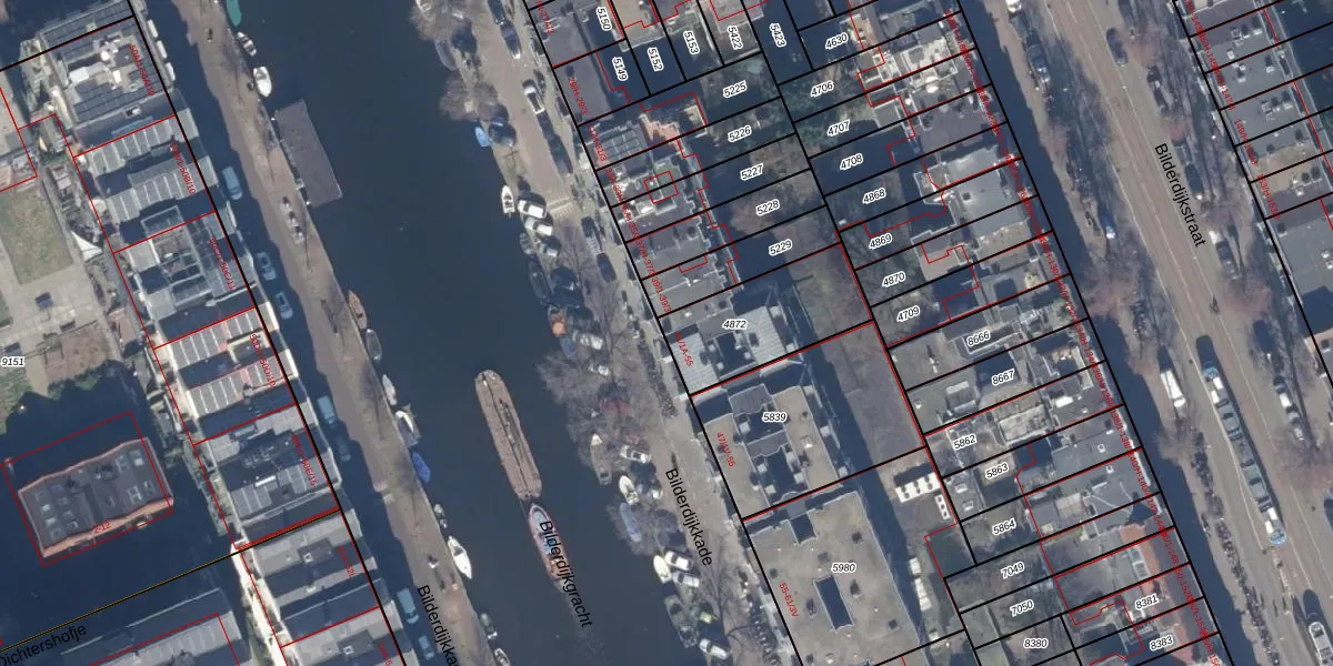 Het perceel waarop Bilderdijkkade 41-3V staat heeft een oppervlakte van 380 m². Dit is een groot perceel. De perceeloppervlakte wordt geregistreerd door het Kadaster. Gedetailleerde informatie over de maten van dit perceel kunt u vinden in het rapport Kadastrale kaart met maatvoering van Bilderdijkkade 41-3V.