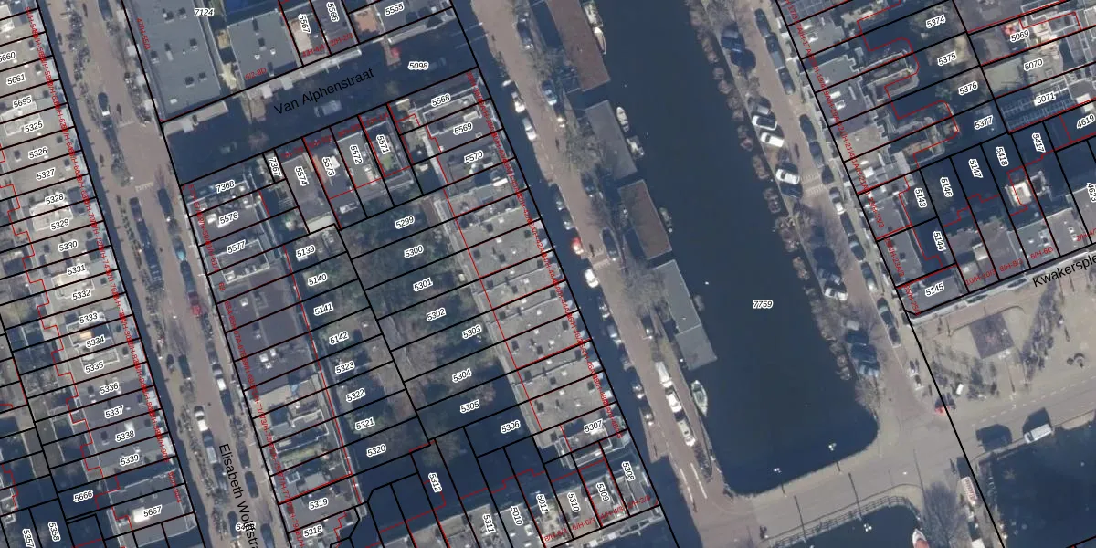 Het perceel waarop het adres ligt is ASD13-Q-5302. De afkorting 'ASD13' staat voor kadastrale gemeente Amsterdam. De gemiddelde perceelgrootte in Amsterdam is 393,94 m². Dit perceel is kleiner: de perceeloppervlakte bedraagt 210 m². Het grootste perceel in de kadastrale gemeente is 6,2 ha. Het kleinste perceel heeft een oppervlakte van 1 m². Er zijn 5 adressen aanwezig op het perceel. De laatste wijziging in het de Basisregistratie Kadaster (BRK) was op 23-11-2006.