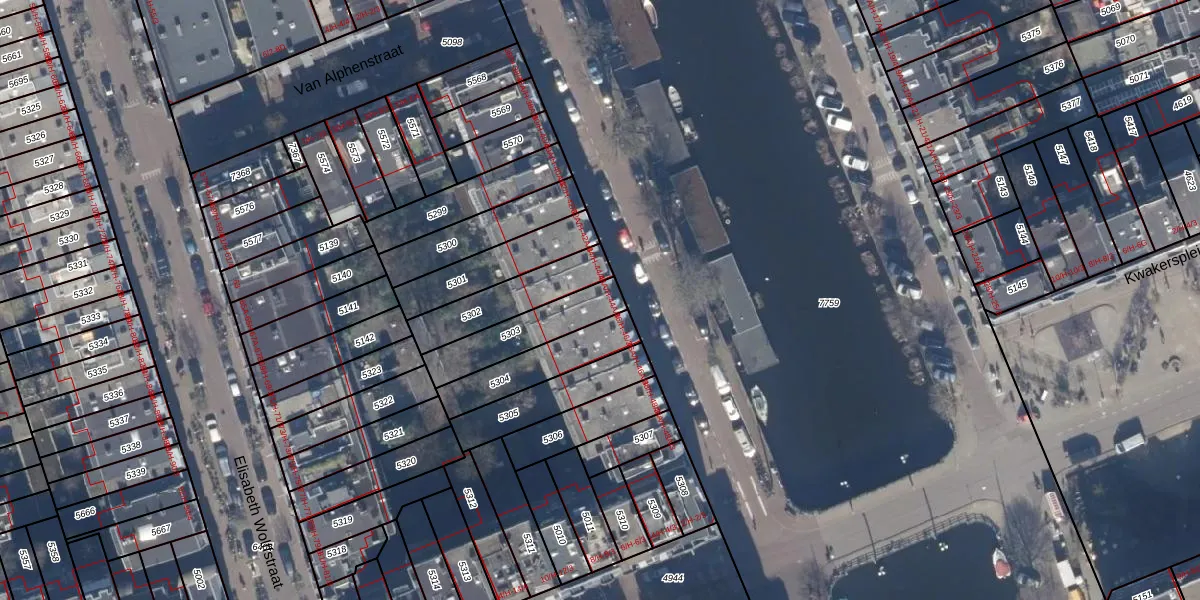 Het perceel waarop het adres ligt is ASD13-Q-5303. De afkorting 'ASD13' staat voor kadastrale gemeente Amsterdam. De gemiddelde perceelgrootte in Amsterdam is 393,94 m². Dit perceel is kleiner: de perceeloppervlakte bedraagt 210 m². Het grootste perceel in de kadastrale gemeente is 6,2 ha. Het kleinste perceel heeft een oppervlakte van 1 m². Op het perceel zijn 4 adressen aanwezig. In de Basisregistratie Kadaster (BRK) werden de grenzen van het perceel geregistreerd op 23-11-2006.