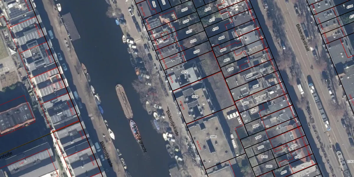 Bilderdijkkade 45-2V is gelegen op kadastraal perceel ASD13Q4872. Deze kadastrale aanduiding is uniek en wordt gebruikt door het Kadaster om eigendomsrechten en andere zakelijke rechten vast te leggen. Het perceel maakt onderdeel uit van de kadastrale gemeente Amsterdam.