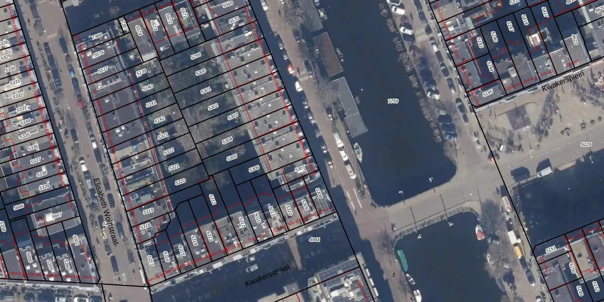 Het perceel waarop het adres ligt is ASD13-Q-5306. De afkorting 'ASD13' staat voor kadastrale gemeente Amsterdam. De gemiddelde perceelgrootte in Amsterdam is 393,94 m². Dit perceel is kleiner: de perceeloppervlakte bedraagt 169 m². Het grootste perceel in de kadastrale gemeente is 6,2 ha. Het kleinste perceel heeft een oppervlakte van 1 m². Er zijn 4 adressen aanwezig op het perceel. De huidige grenzen van het perceel zijn digitaal in de Basisregistratie Kadaster (BRK) geregistreerd op 23-11-2006.