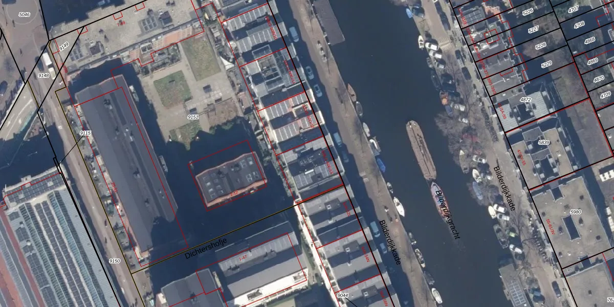 Bilderdijkkade 50-E-14 is gelegen op kadastraal perceel ASD13Q9151. Deze kadastrale aanduiding is uniek en wordt gebruikt door het Kadaster om eigendomsrechten en andere zakelijke rechten vast te leggen. Het perceel maakt onderdeel uit van de kadastrale gemeente Amsterdam.