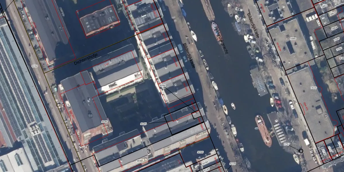 Het perceel waarop Bilderdijkkade 56-M staat heeft een oppervlakte van 4420 m². Dit is een zeer groot perceel. De perceeloppervlakte wordt geregistreerd door het Kadaster. Gedetailleerde informatie over de maten van dit perceel kunt u vinden in het rapport Kadastrale kaart met maatvoering van Bilderdijkkade 56-M.