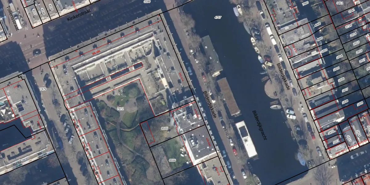 Het perceel waarop Bilderdijkkade 564 staat heeft een oppervlakte van 4713 m². Dit is een zeer groot perceel. De perceeloppervlakte wordt geregistreerd door het Kadaster. Gedetailleerde informatie over de maten van dit perceel kunt u vinden in het rapport Kadastrale kaart met maatvoering van Bilderdijkkade 564.