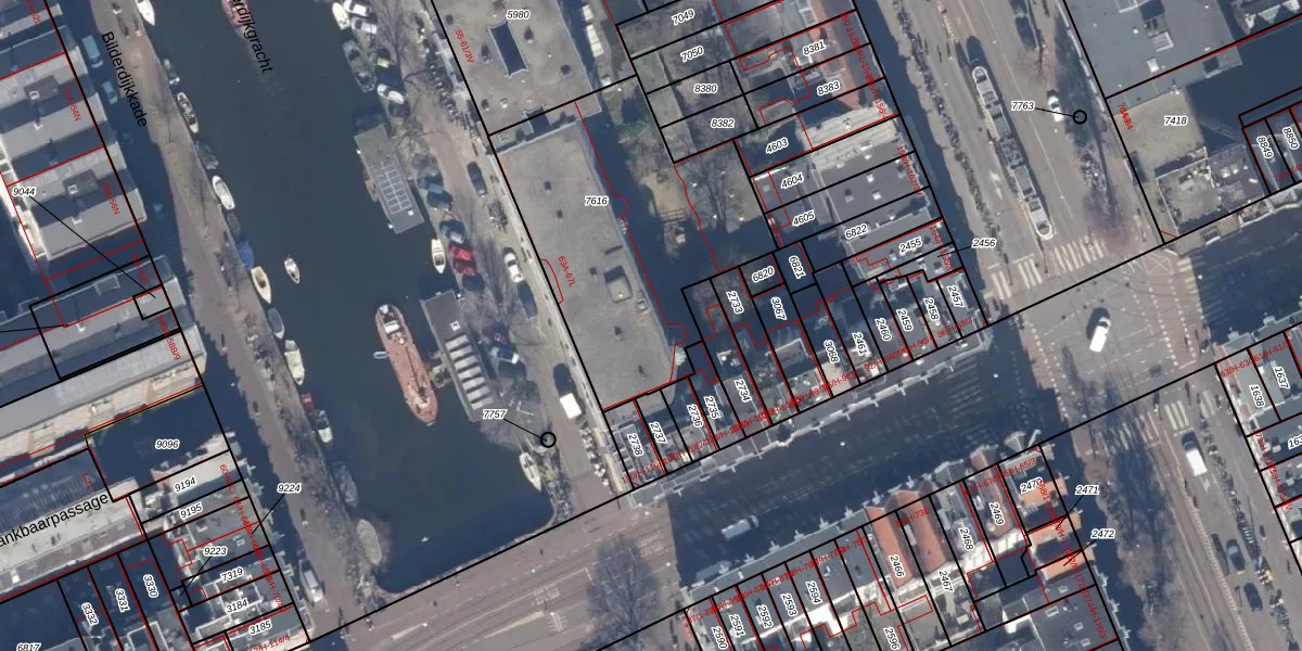 Het perceel waarop Bilderdijkkade 63-H staat heeft een oppervlakte van 1220 m². Dit is een zeer groot perceel. De perceeloppervlakte wordt geregistreerd door het Kadaster. Gedetailleerde informatie over de maten van dit perceel kunt u vinden in het rapport Kadastrale kaart met maatvoering van Bilderdijkkade 63-H.