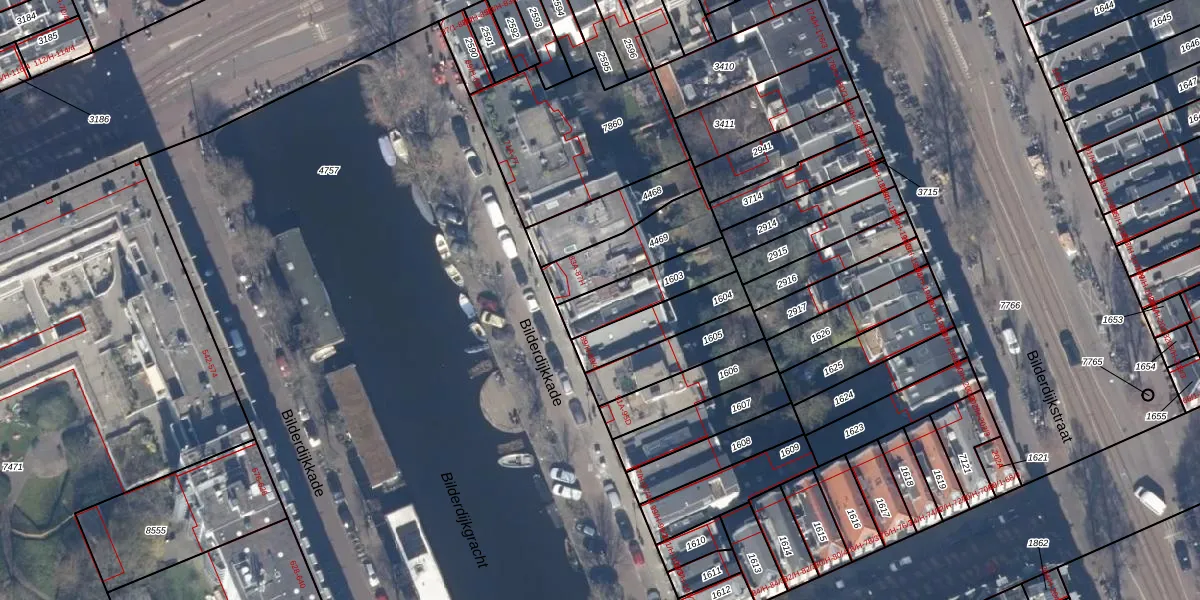 Het perceel waarop Bilderdijkkade 85-H staat heeft een oppervlakte van 180 m². Dit is een middelgroot perceel. De perceeloppervlakte wordt geregistreerd door het Kadaster. Gedetailleerde informatie over de maten van dit perceel kunt u vinden in het rapport Kadastrale kaart met maatvoering van Bilderdijkkade 85-H.