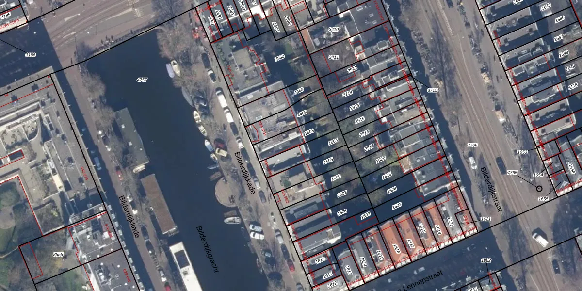 Het perceel waarop Bilderdijkkade 87-H staat heeft een oppervlakte van 180 m². Dit is een middelgroot perceel. De perceeloppervlakte wordt geregistreerd door het Kadaster. Gedetailleerde informatie over de maten van dit perceel kunt u vinden in het rapport Kadastrale kaart met maatvoering van Bilderdijkkade 87-H.