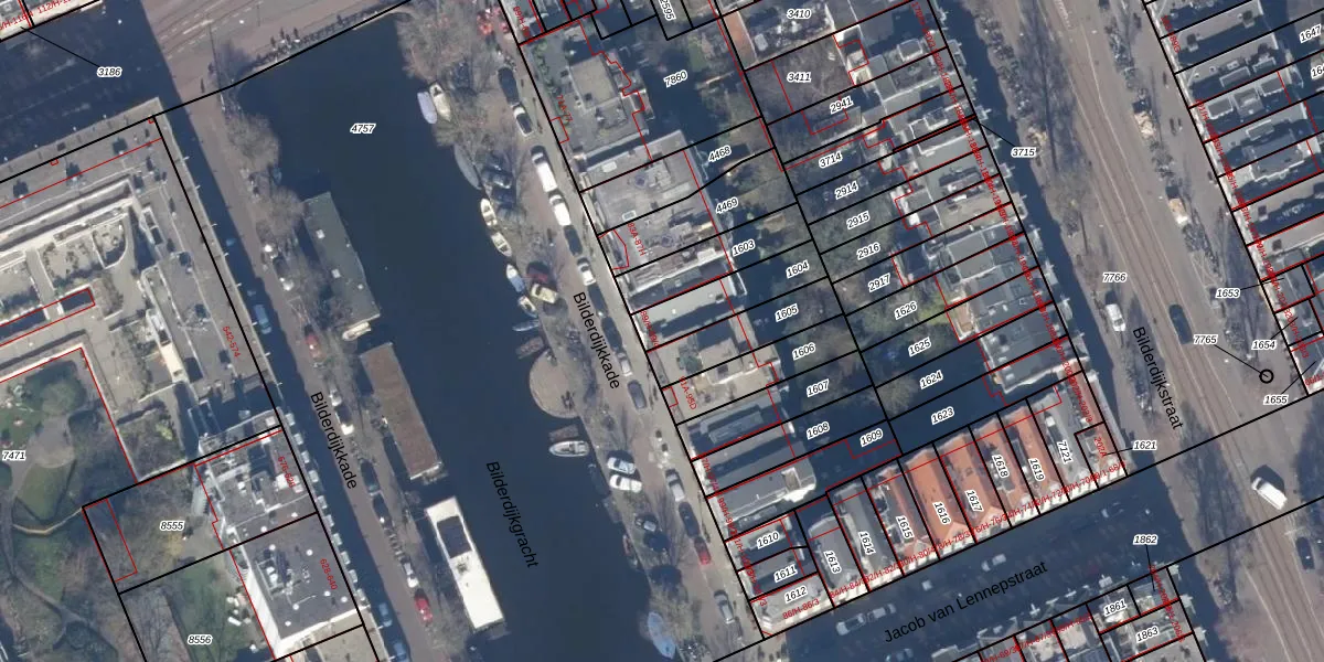 Het perceel waarop Bilderdijkkade 89-4 staat heeft een oppervlakte van 180 m². Dit is een middelgroot perceel. De perceeloppervlakte wordt geregistreerd door het Kadaster. Gedetailleerde informatie over de maten van dit perceel kunt u vinden in het rapport Kadastrale kaart met maatvoering van Bilderdijkkade 89-4.