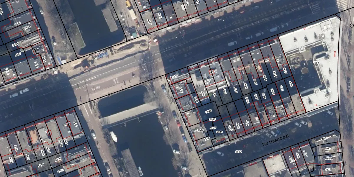 Het perceel waarop het adres ligt is ASD13-Q-5544. De afkorting 'ASD13' staat voor kadastrale gemeente Amsterdam. De gemiddelde perceelgrootte in Amsterdam is 392,9 m². Dit perceel is kleiner: de perceeloppervlakte bedraagt 102 m². Het kleinste perceel in de kadastrale gemeente is 1 m² groot. De grootste perceeloppervlakte is 4,8 ha. Op het perceel zijn 5 adressen aanwezig. In de Basisregistratie Kadaster (BRK) werden de grenzen van het perceel geregistreerd op 23-11-2006.