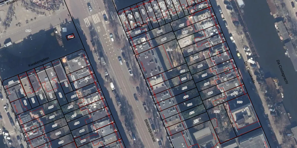 Het perceel waarop het adres ligt is ASD13-Q-6906. De afkorting 'ASD13' staat voor kadastrale gemeente Amsterdam. De oppervlakte van het perceel is 535 m². Dat is groter dan gemiddeld in Amsterdam, waar de gemiddelde perceeloppervlakte op 394,07 m² ligt. Het kleinste perceel in de kadastrale gemeente is 1 m² groot. De grootste perceeloppervlakte is 6,2 ha. Op het perceel zijn 11 adressen aanwezig. In de Basisregistratie Kadaster (BRK) werden de grenzen van het perceel geregistreerd op 23-11-2006.
