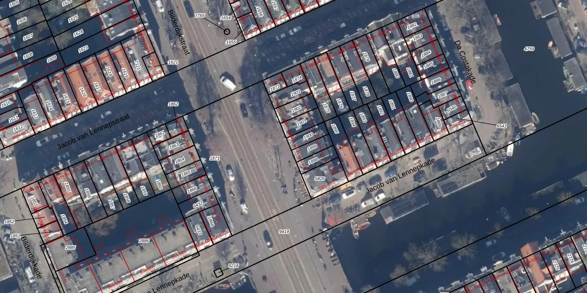 Het perceel waarop het adres ligt is ASD13-Q-1900. De afkorting 'ASD13' staat voor kadastrale gemeente Amsterdam. Het perceel is 62 m² groot. Dat is kleiner dan de gemiddelde perceeloppervlakte in Amsterdam, dat op 392,9 m² ligt. Het kleinste perceel in de kadastrale gemeente is 1 m² groot. De grootste perceeloppervlakte is 4,8 ha. Op het perceel zijn 4 adressen aanwezig. De laatste wijziging in het de Basisregistratie Kadaster (BRK) was op 03-11-2006.