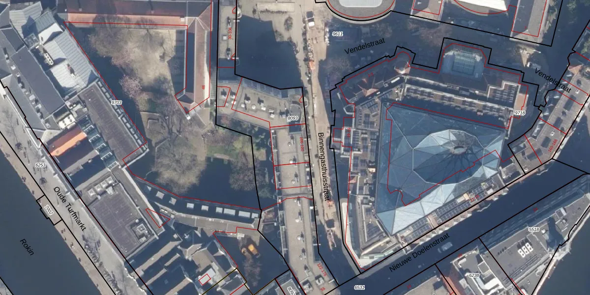 Het perceel waarop Binnengasthuisstraat 114 staat heeft een oppervlakte van 1630 m². Dit is een zeer groot perceel. De perceeloppervlakte wordt geregistreerd door het Kadaster. Gedetailleerde informatie over de maten van dit perceel kunt u vinden in het rapport Kadastrale kaart met maatvoering van Binnengasthuisstraat 114.