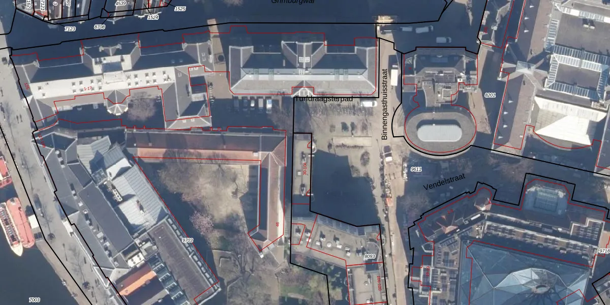 Het perceel waarop Binnengasthuisstraat 32 staat heeft een oppervlakte van 1630 m². Dit is een zeer groot perceel. De perceeloppervlakte wordt geregistreerd door het Kadaster. Gedetailleerde informatie over de maten van dit perceel kunt u vinden in het rapport Kadastrale kaart met maatvoering van Binnengasthuisstraat 32.