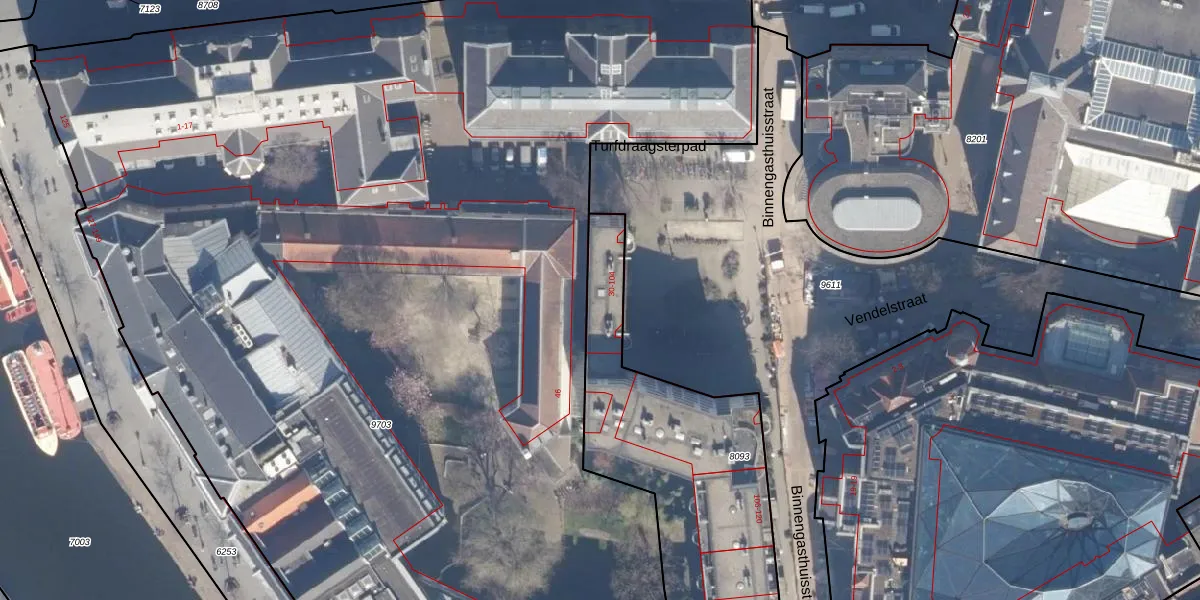 Het perceel waarop Binnengasthuisstraat 56 staat heeft een oppervlakte van 1630 m². Dit is een zeer groot perceel. De perceeloppervlakte wordt geregistreerd door het Kadaster. Gedetailleerde informatie over de maten van dit perceel kunt u vinden in het rapport Kadastrale kaart met maatvoering van Binnengasthuisstraat 56.