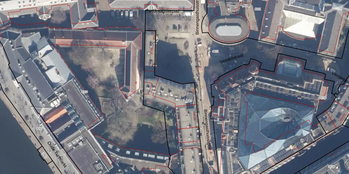 Het perceel waarop Binnengasthuisstraat 72 staat heeft een oppervlakte van 1630 m². Dit is een zeer groot perceel. De perceeloppervlakte wordt geregistreerd door het Kadaster. Gedetailleerde informatie over de maten van dit perceel kunt u vinden in het rapport Kadastrale kaart met maatvoering van Binnengasthuisstraat 72.