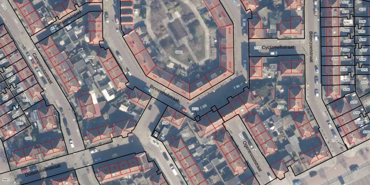 Het perceel waarop Binnenhofstraat 2 staat heeft een oppervlakte van 3329 m². Dit is een zeer groot perceel. De perceeloppervlakte wordt geregistreerd door het Kadaster. Gedetailleerde informatie over de maten van dit perceel kunt u vinden in het rapport Kadastrale kaart met maatvoering van Binnenhofstraat 2.