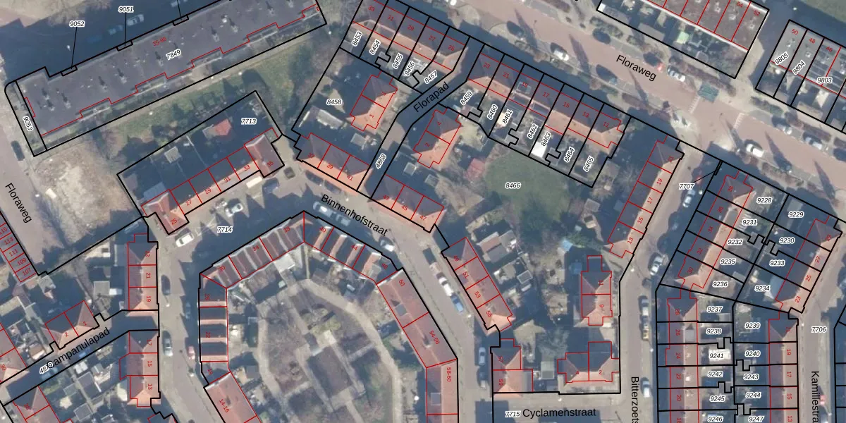 Het perceel waarop Binnenhofstraat 47 staat heeft een oppervlakte van 2721 m². Dit is een zeer groot perceel. De perceeloppervlakte wordt geregistreerd door het Kadaster. Gedetailleerde informatie over de maten van dit perceel kunt u vinden in het rapport Kadastrale kaart met maatvoering van Binnenhofstraat 47.