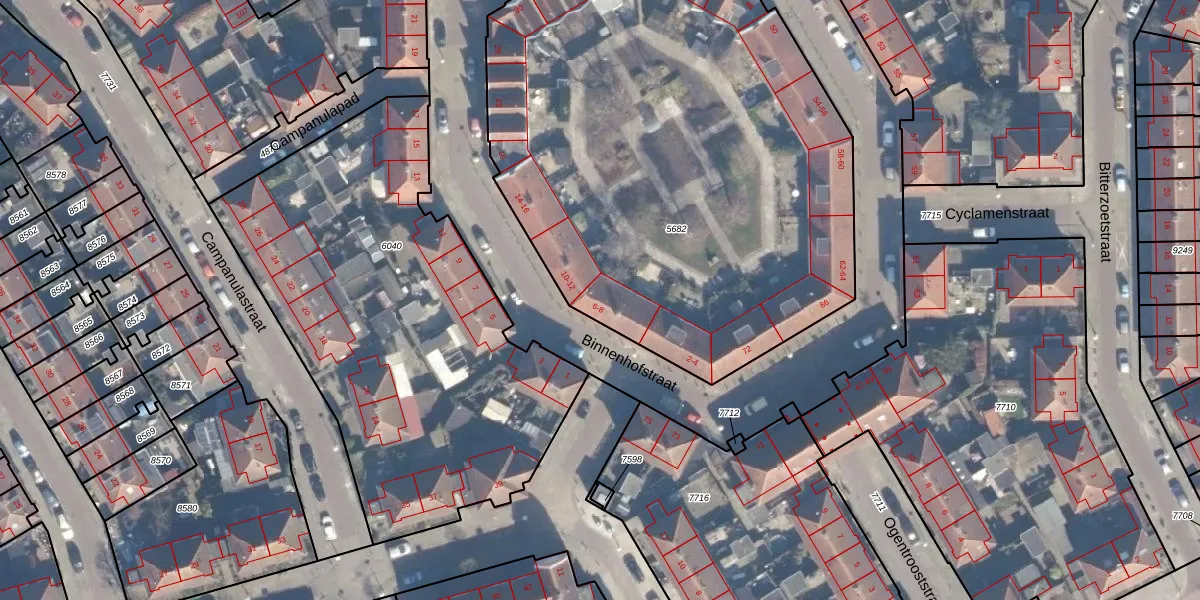 Het perceel waarop Binnenhofstraat 8 staat heeft een oppervlakte van 3329 m². Dit is een zeer groot perceel. De perceeloppervlakte wordt geregistreerd door het Kadaster. Gedetailleerde informatie over de maten van dit perceel kunt u vinden in het rapport Kadastrale kaart met maatvoering van Binnenhofstraat 8.