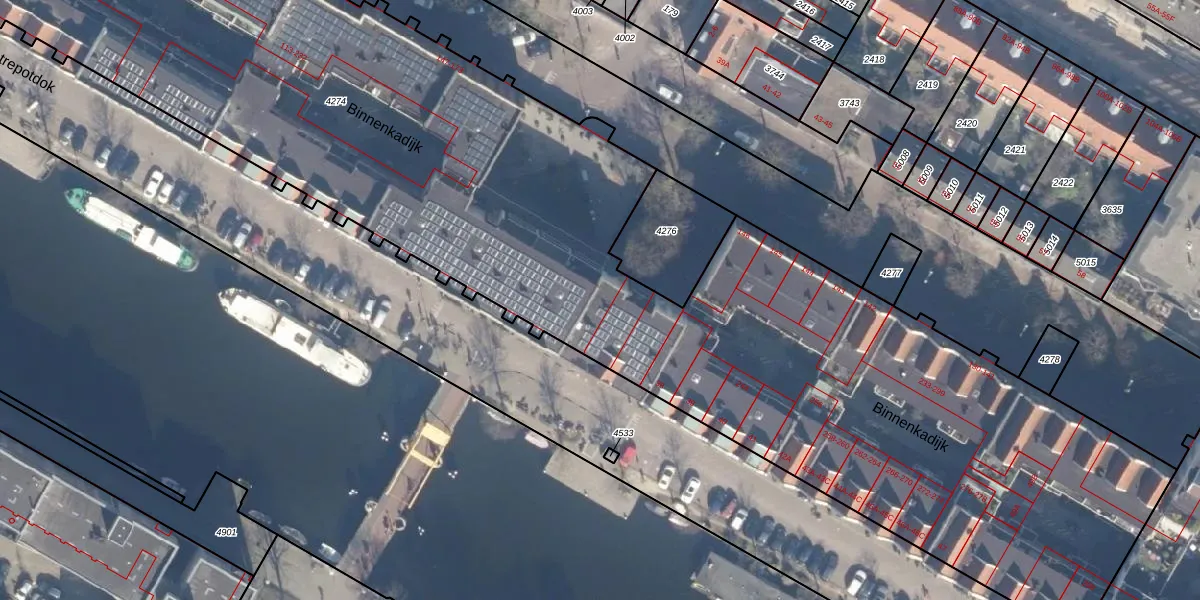 Binnenkadijk 224 is gelegen op kadastraal perceel ASD11O4274. Deze kadastrale aanduiding is uniek en wordt gebruikt door het Kadaster om eigendomsrechten en andere zakelijke rechten vast te leggen. Het perceel maakt onderdeel uit van de kadastrale gemeente Amsterdam.