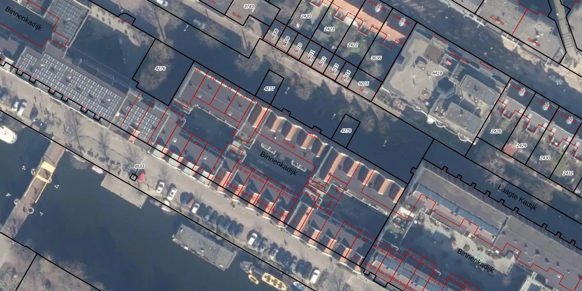 Binnenkadijk 275 is gelegen op kadastraal perceel ASD11O4274. Deze kadastrale aanduiding is uniek en wordt gebruikt door het Kadaster om eigendomsrechten en andere zakelijke rechten vast te leggen. Het perceel maakt onderdeel uit van de kadastrale gemeente Amsterdam.