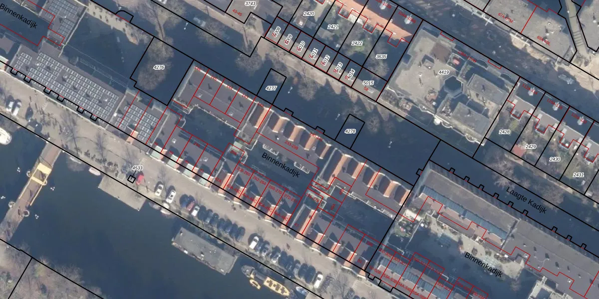 Binnenkadijk 285 is gelegen op kadastraal perceel ASD11O4274. Deze kadastrale aanduiding is uniek en wordt gebruikt door het Kadaster om eigendomsrechten en andere zakelijke rechten vast te leggen. Het perceel maakt onderdeel uit van de kadastrale gemeente Amsterdam.