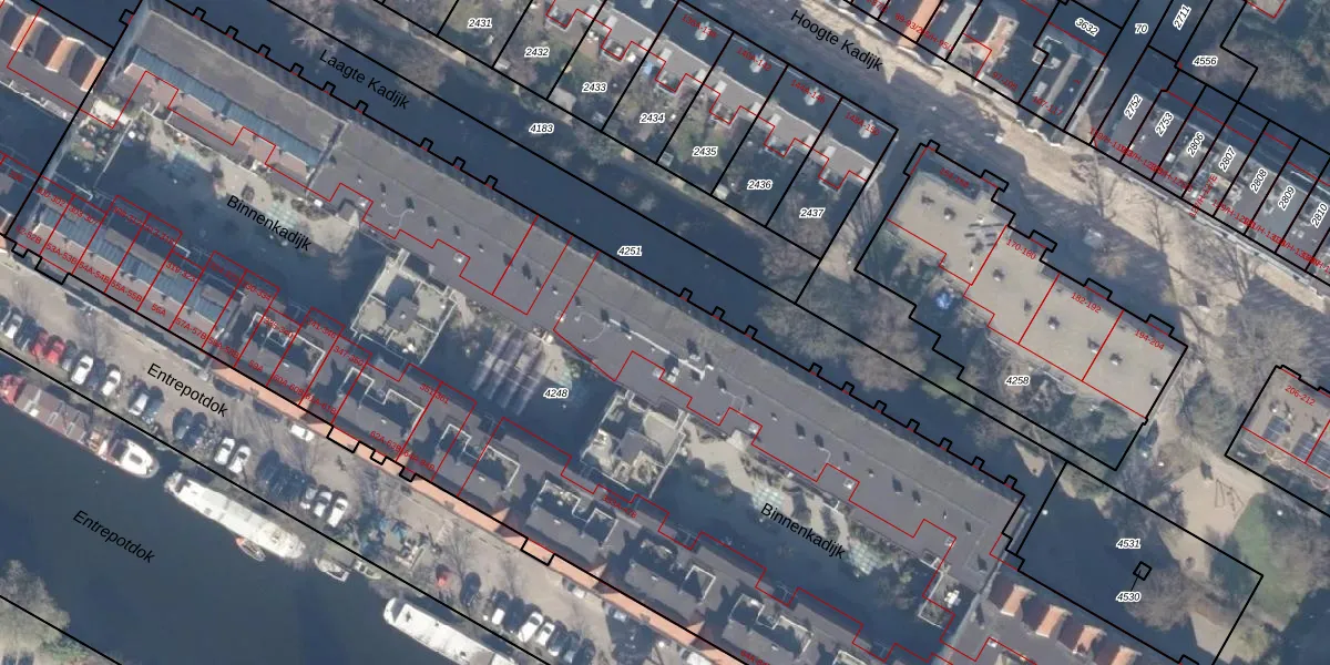 Het adres ligt op het perceel ASD11-O-4248, dat zich in de kadastrale gemeente Amsterdam bevindt. Het perceel is met 7844 m² relatief groot. Het gemiddelde ligt in de kadastrale gemeente Amsterdam op 781,11 m². Het grootste perceel in de kadastrale gemeente is 12,0 ha. Het kleinste perceel heeft een oppervlakte van 1 m². Er zijn 253 adressen aanwezig op het perceel. De laatste wijziging in het de Basisregistratie Kadaster (BRK) was op 17-11-2006.