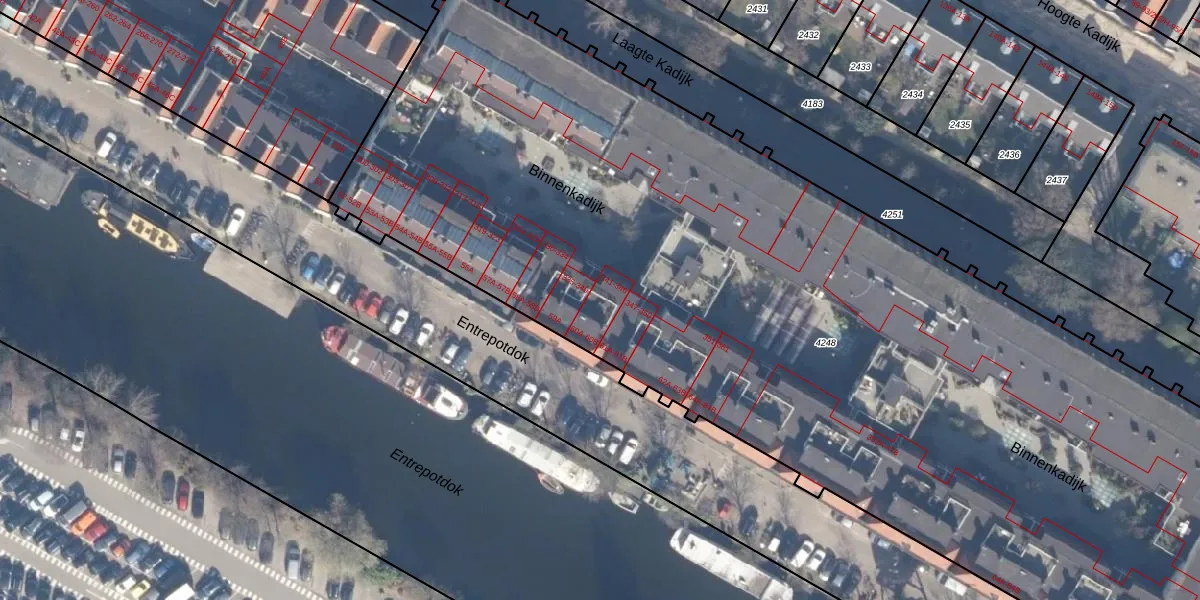 Binnenkadijk 342 is gelegen op kadastraal perceel ASD11O4248. Deze kadastrale aanduiding is uniek en wordt gebruikt door het Kadaster om eigendomsrechten en andere zakelijke rechten vast te leggen. Het perceel maakt onderdeel uit van de kadastrale gemeente Amsterdam.