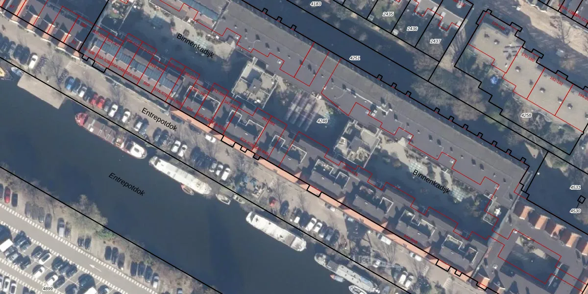 Binnenkadijk 374 is gelegen op kadastraal perceel ASD11O4248. Deze kadastrale aanduiding is uniek en wordt gebruikt door het Kadaster om eigendomsrechten en andere zakelijke rechten vast te leggen. Het perceel maakt onderdeel uit van de kadastrale gemeente Amsterdam.