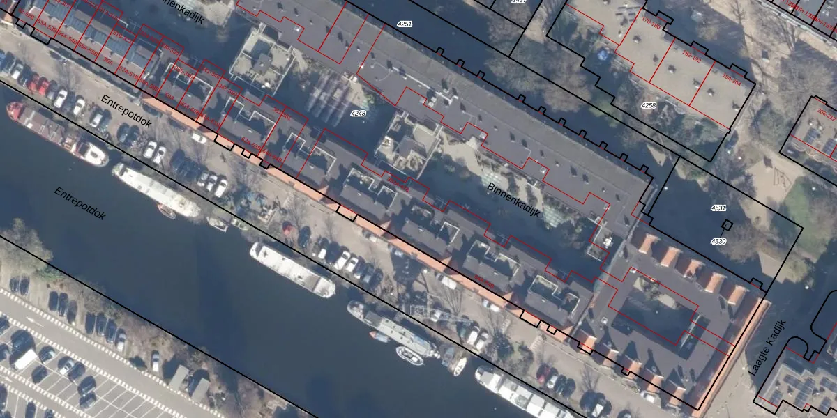 Binnenkadijk 400 is gelegen op kadastraal perceel ASD11O4248. Deze kadastrale aanduiding is uniek en wordt gebruikt door het Kadaster om eigendomsrechten en andere zakelijke rechten vast te leggen. Het perceel maakt onderdeel uit van de kadastrale gemeente Amsterdam.