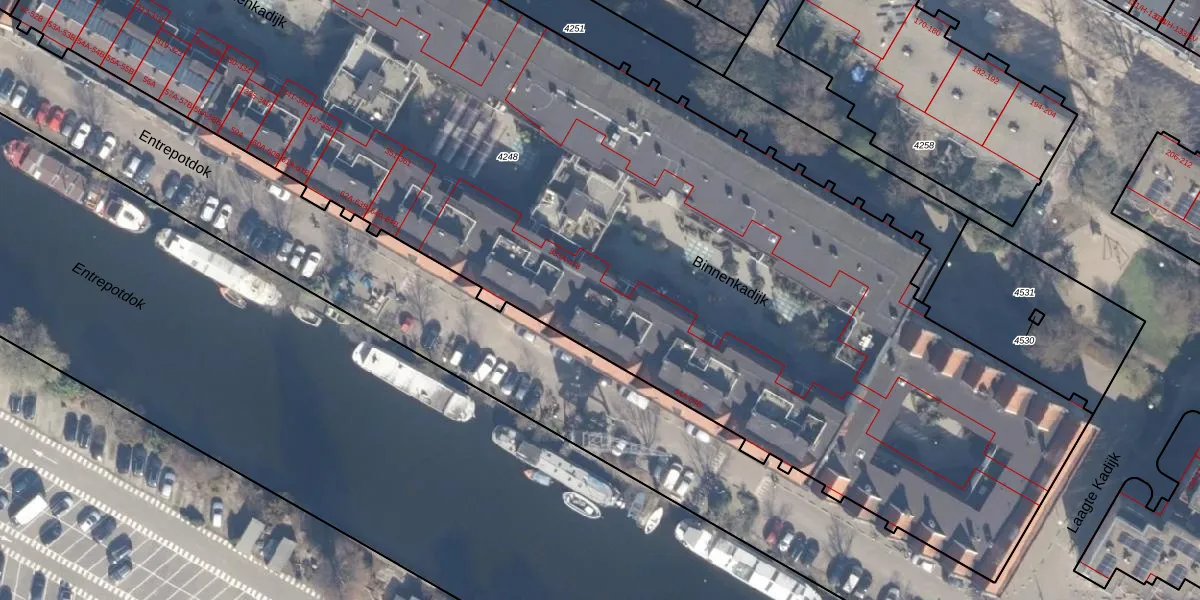 Binnenkadijk 402 is gelegen op kadastraal perceel ASD11O4248. Deze kadastrale aanduiding is uniek en wordt gebruikt door het Kadaster om eigendomsrechten en andere zakelijke rechten vast te leggen. Het perceel maakt onderdeel uit van de kadastrale gemeente Amsterdam.