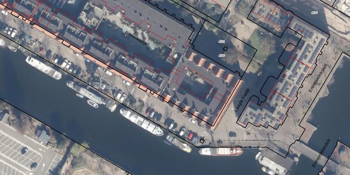 Het perceel waarop Binnenkadijk 451 staat heeft een oppervlakte van 7844 m². Dit is een zeer groot perceel. De perceeloppervlakte wordt geregistreerd door het Kadaster. Gedetailleerde informatie over de maten van dit perceel kunt u vinden in het rapport Kadastrale kaart met maatvoering van Binnenkadijk 451.