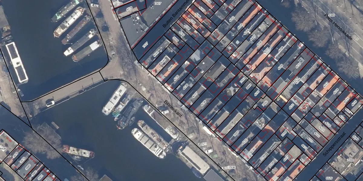Binnenkant 21-O is gelegen op kadastraal perceel ASD05G4238. Deze kadastrale aanduiding is uniek en wordt gebruikt door het Kadaster om eigendomsrechten en andere zakelijke rechten vast te leggen. Het perceel maakt onderdeel uit van de kadastrale gemeente Amsterdam.
