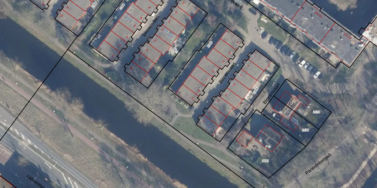 Binnenvaart 15 is gelegen op kadastraal perceel ASD36AQ2306. Deze kadastrale aanduiding is uniek en wordt gebruikt door het Kadaster om eigendomsrechten en andere zakelijke rechten vast te leggen. Het perceel maakt onderdeel uit van de kadastrale gemeente Amsterdam.