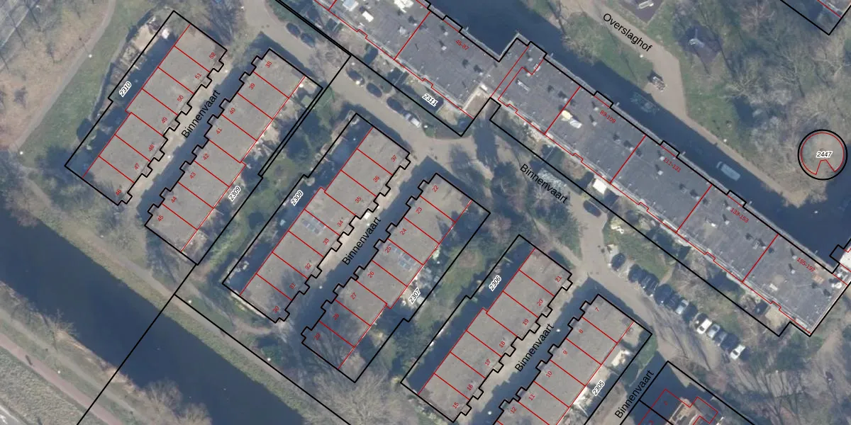 Het perceel waarop Binnenvaart 23 staat heeft een oppervlakte van 815 m². Dit is een groot perceel. De perceeloppervlakte wordt geregistreerd door het Kadaster. Gedetailleerde informatie over de maten van dit perceel kunt u vinden in het rapport Kadastrale kaart met maatvoering van Binnenvaart 23.