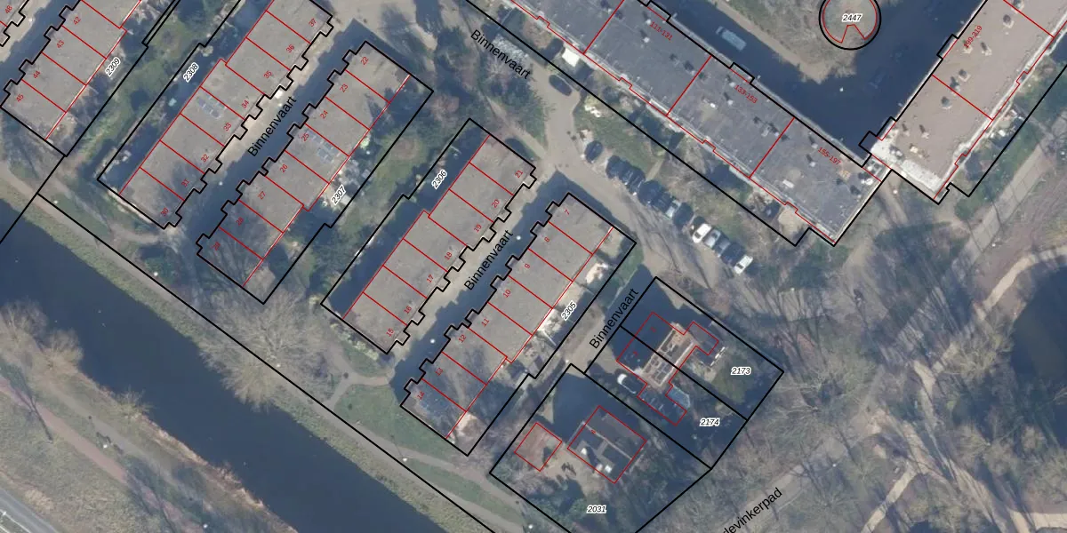 Het perceel waarop Binnenvaart 9 staat heeft een oppervlakte van 815 m². Dit is een groot perceel. De perceeloppervlakte wordt geregistreerd door het Kadaster. Gedetailleerde informatie over de maten van dit perceel kunt u vinden in het rapport Kadastrale kaart met maatvoering van Binnenvaart 9.