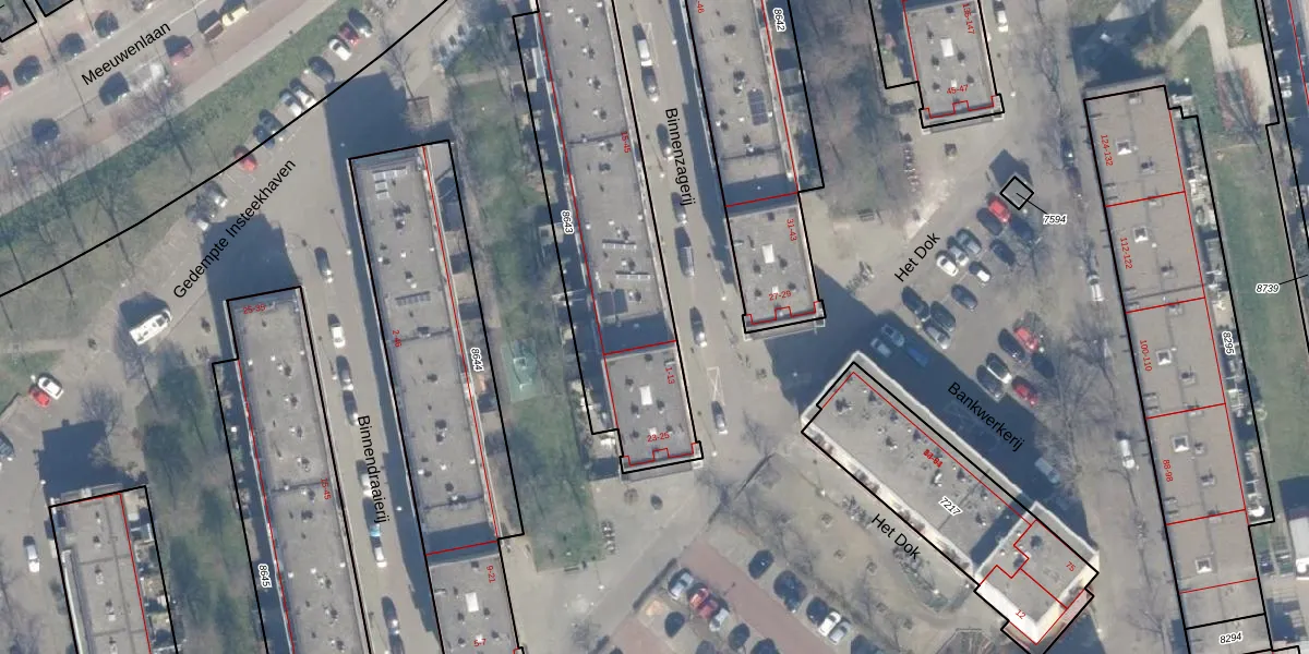 Het perceel waarop Binnenzagerij 15 staat heeft een oppervlakte van 1184 m². Dit is een zeer groot perceel. De perceeloppervlakte wordt geregistreerd door het Kadaster. Gedetailleerde informatie over de maten van dit perceel kunt u vinden in het rapport Kadastrale kaart met maatvoering van Binnenzagerij 15.