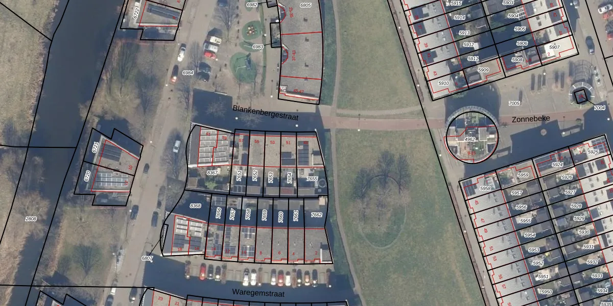 Gebruik de zoekbalk of klik op een perceel voor informatie over de adressen binnen dit perceel.
