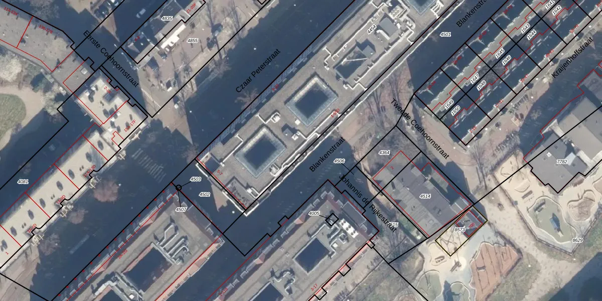 Blankenstraat 11-B is gelegen op kadastraal perceel ASD10N4454. Deze kadastrale aanduiding is uniek en wordt gebruikt door het Kadaster om eigendomsrechten en andere zakelijke rechten vast te leggen. Het perceel maakt onderdeel uit van de kadastrale gemeente Amsterdam.