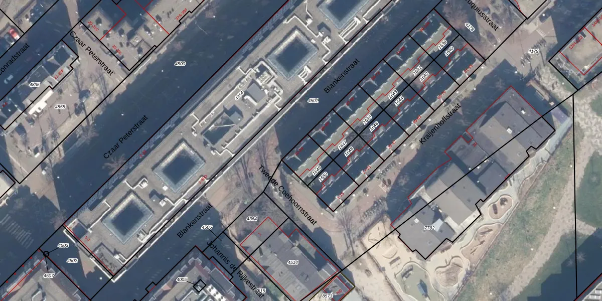 Blankenstraat 14 is gelegen op kadastraal perceel ASD10N1649. Deze kadastrale aanduiding is uniek en wordt gebruikt door het Kadaster om eigendomsrechten en andere zakelijke rechten vast te leggen. Het perceel maakt onderdeel uit van de kadastrale gemeente Amsterdam.
