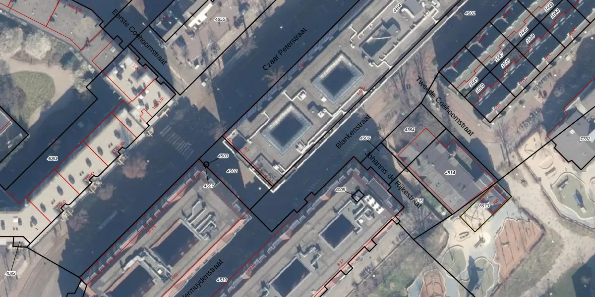 Blankenstraat 5-C is gelegen op kadastraal perceel ASD10N4454. Deze kadastrale aanduiding is uniek en wordt gebruikt door het Kadaster om eigendomsrechten en andere zakelijke rechten vast te leggen. Het perceel maakt onderdeel uit van de kadastrale gemeente Amsterdam.