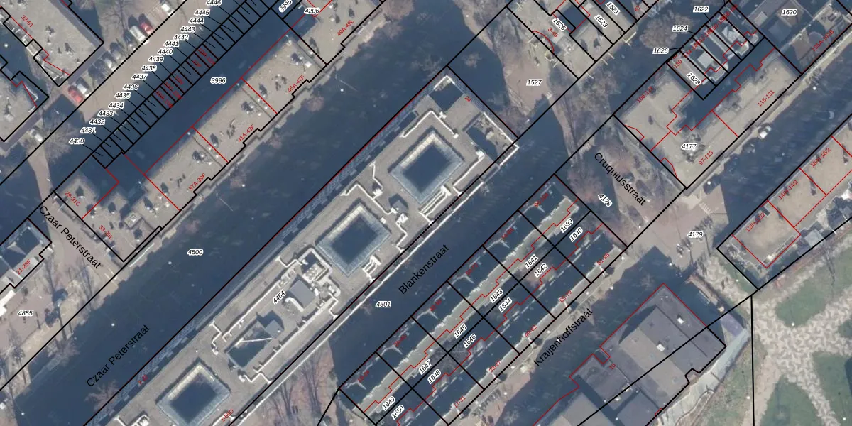 Blankenstraat 53-A is gelegen op kadastraal perceel ASD10N4454. Deze kadastrale aanduiding is uniek en wordt gebruikt door het Kadaster om eigendomsrechten en andere zakelijke rechten vast te leggen. Het perceel maakt onderdeel uit van de kadastrale gemeente Amsterdam.