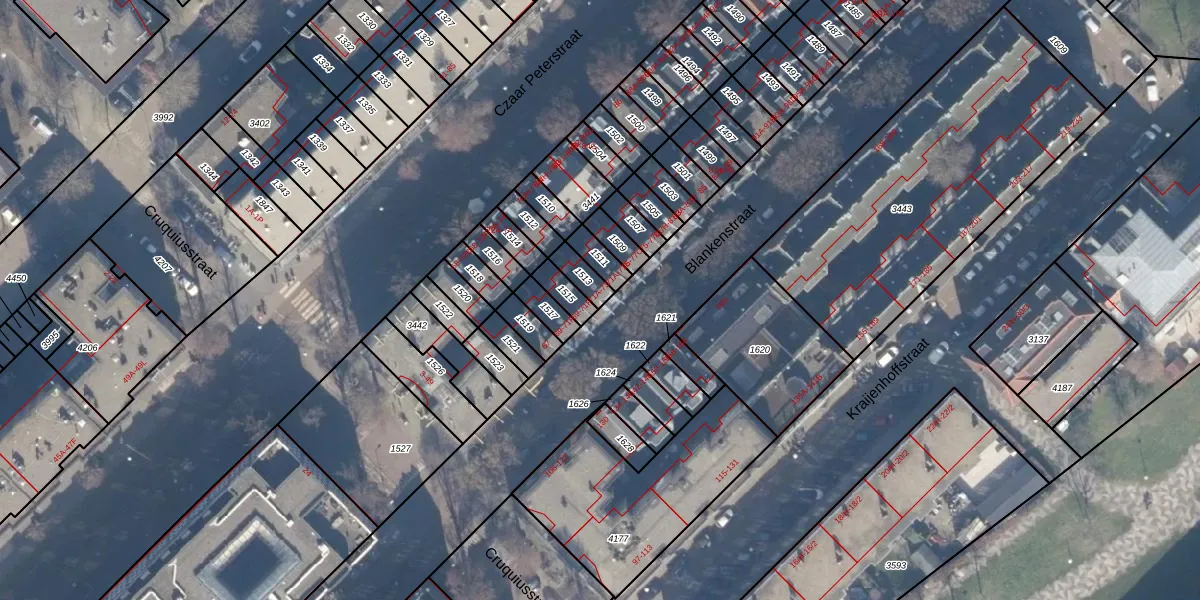 Het perceel waarop Blankenstraat 71-E staat heeft een oppervlakte van 49 m². Dit is een klein perceel. De perceeloppervlakte wordt geregistreerd door het Kadaster. Gedetailleerde informatie over de maten van dit perceel kunt u vinden in het rapport Kadastrale kaart met maatvoering van Blankenstraat 71-E.