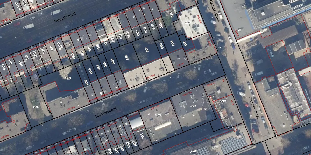 Blasiusstraat 121-A is gelegen op kadastraal perceel ASD15S8094. Deze kadastrale aanduiding is uniek en wordt gebruikt door het Kadaster om eigendomsrechten en andere zakelijke rechten vast te leggen. Het perceel maakt onderdeel uit van de kadastrale gemeente Amsterdam.