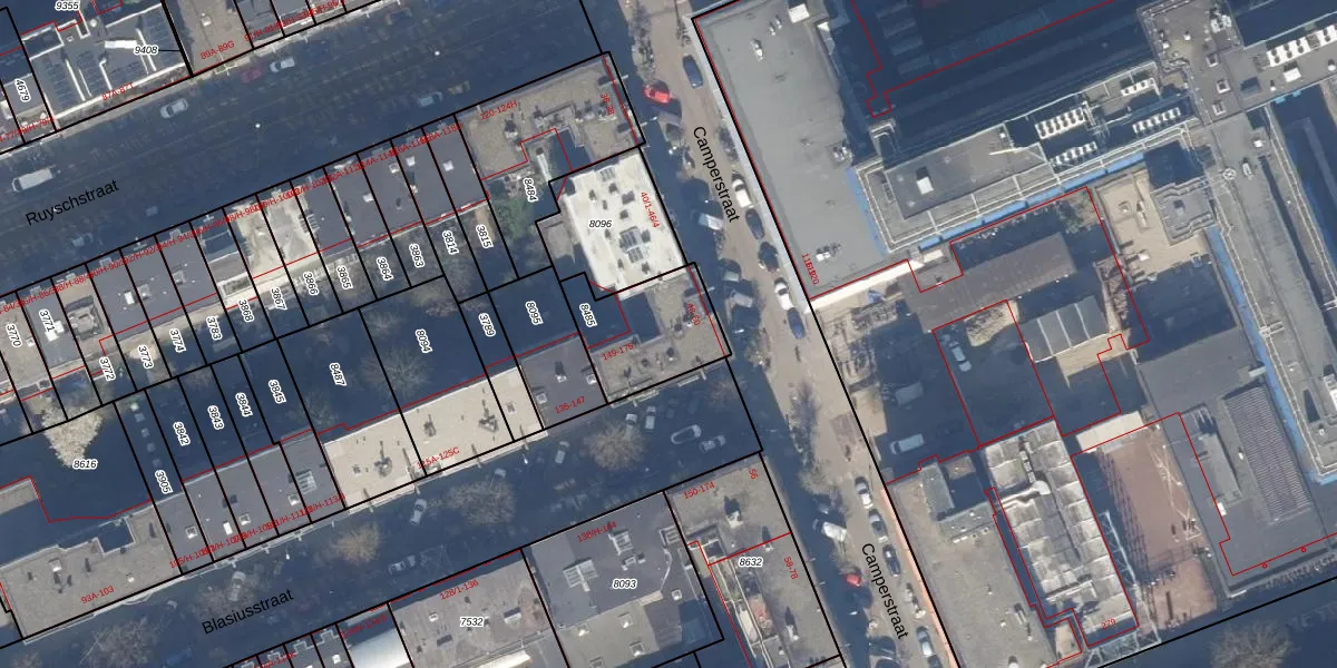 Blasiusstraat 165 is gelegen op kadastraal perceel ASD15S8485. Deze kadastrale aanduiding is uniek en wordt gebruikt door het Kadaster om eigendomsrechten en andere zakelijke rechten vast te leggen. Het perceel maakt onderdeel uit van de kadastrale gemeente Amsterdam.